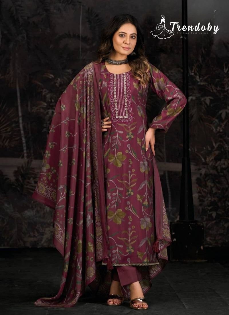 Elegant Kilory Oddny 2 collection by Kilory Trends, designed for women who love luxurious fabrics with stylish detailing. This premium dress material collection is crafted from pure muslin silk, offering a soft texture, lightweight feel, and graceful drape that enhances the overall look of the outfit.